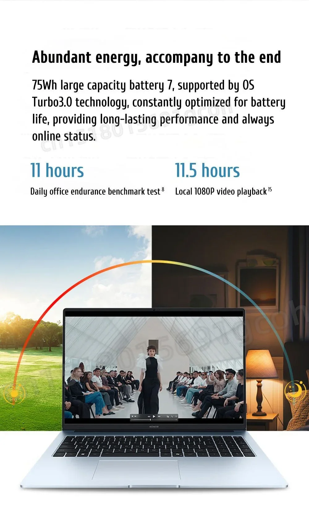 11 hours daily office, 75Wh large battery