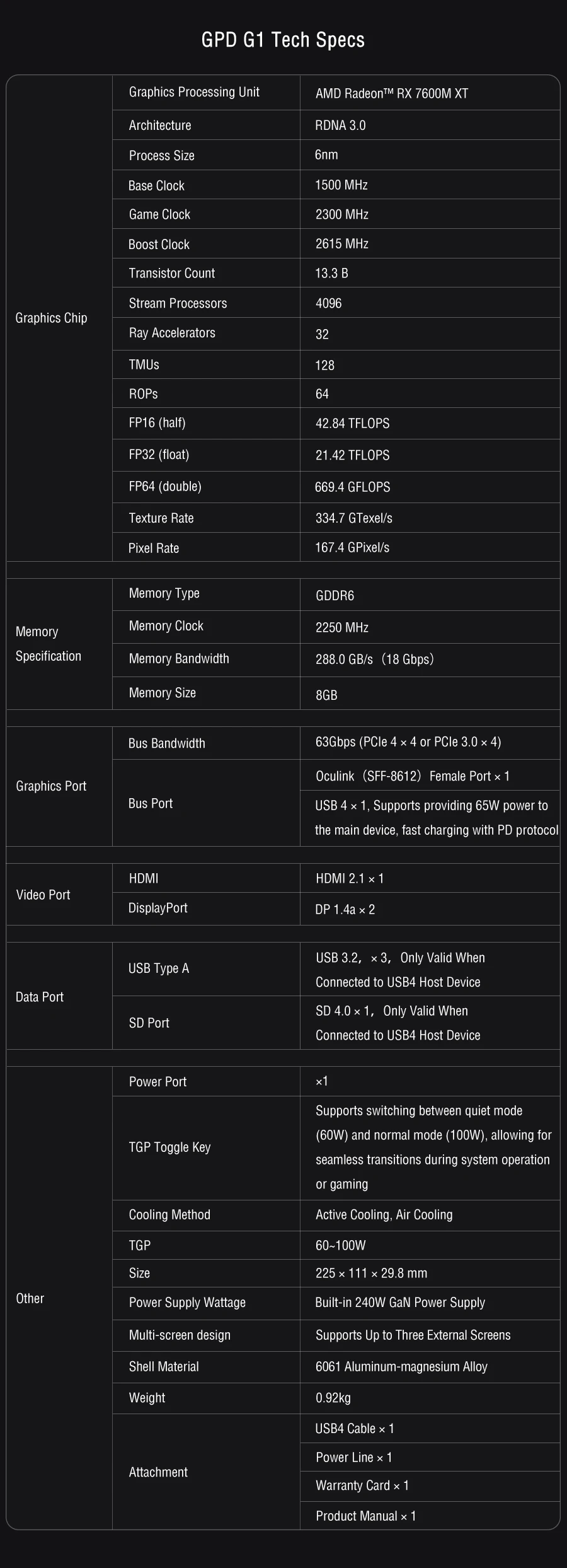 2025 Latest GPD G1 Graphics Card Expansion Dock USB 3.2 Type a SD 4.0 HDMI Compatible SD 4.0 Card Reader Displayport 1.4A