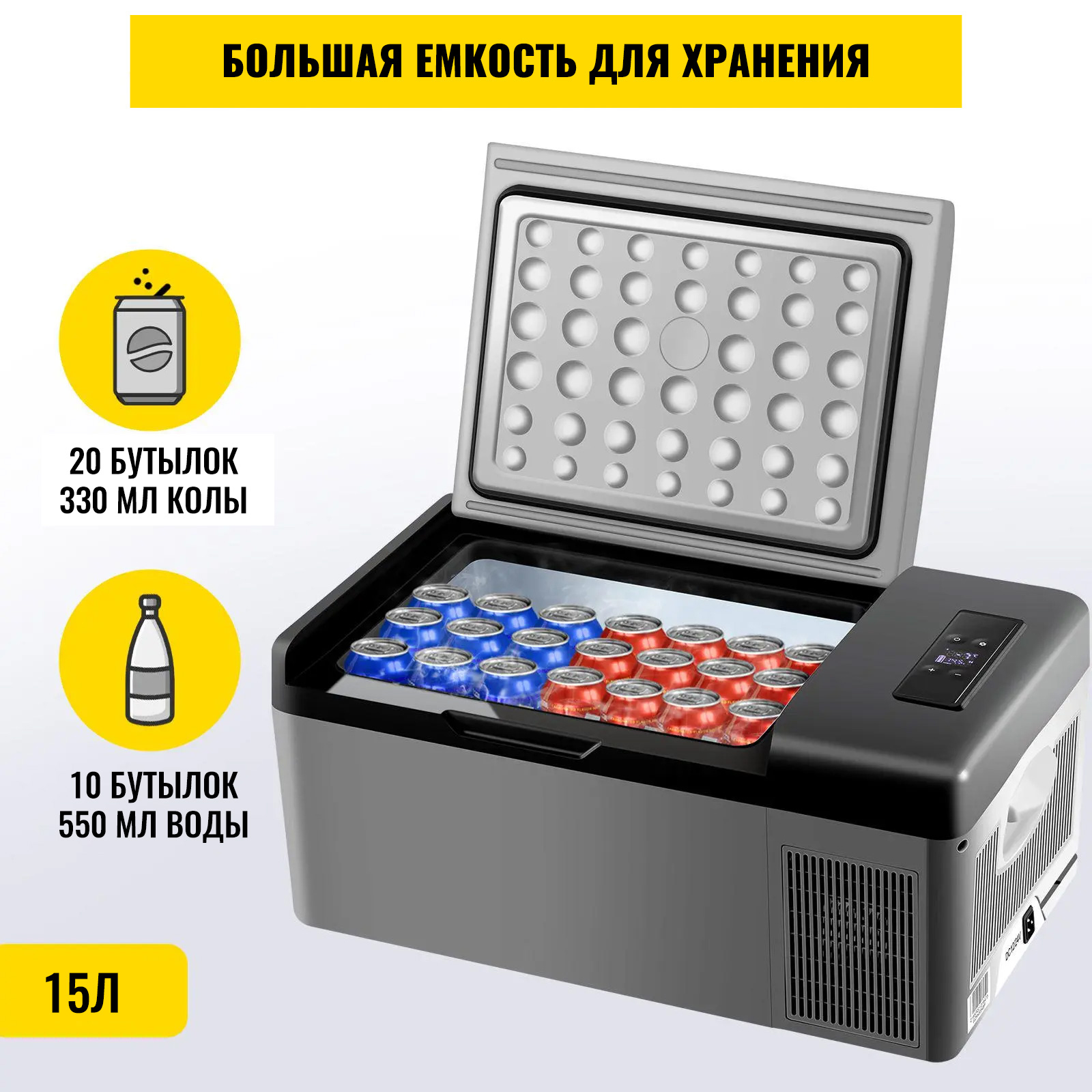Versatile Capacity: This fridge holds up to 20 bottles of 330ml cola or 10 bottles of 550ml water, boasting a total capacity of 15L. Ideal for both home and car use, it features a robust ABS plastic construction and thick outer shell for superior heat preservation.